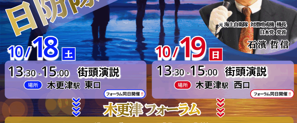9月は、元海上自衛隊の海将で、日本党党首である石濱哲信が埼玉、群馬にて講演を行います。