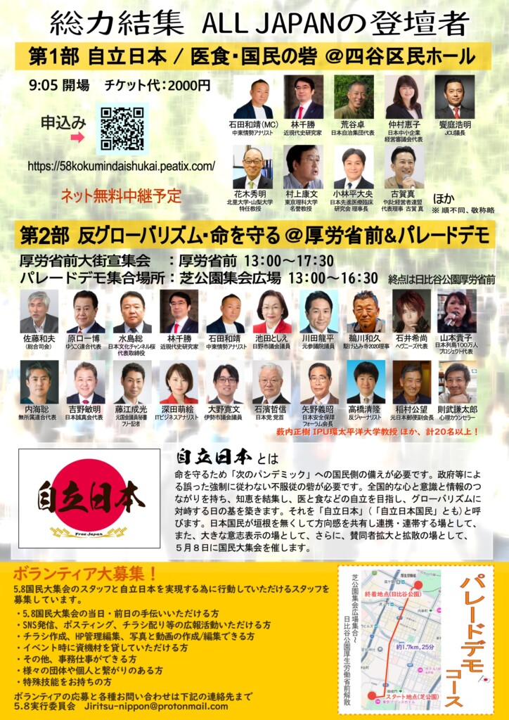 国民大集会の主旨、詳細は、添付のフライヤーをご参照ください。