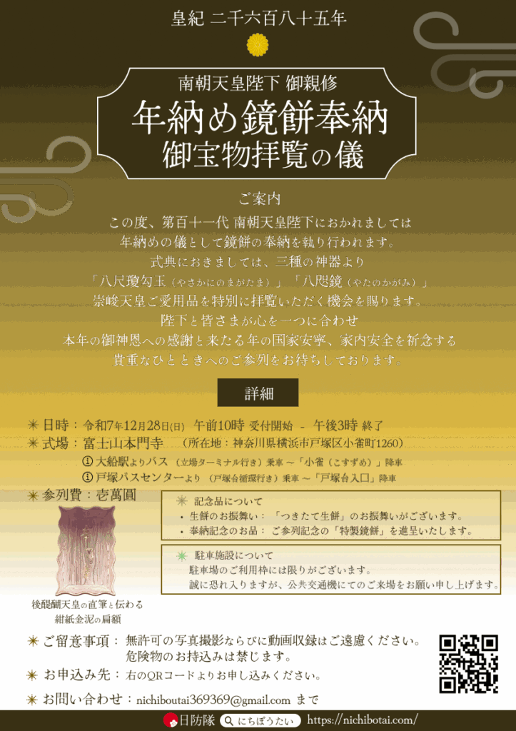 お問合せ先:nichiboutai369369@gmail.comまで、メールにて承ります。